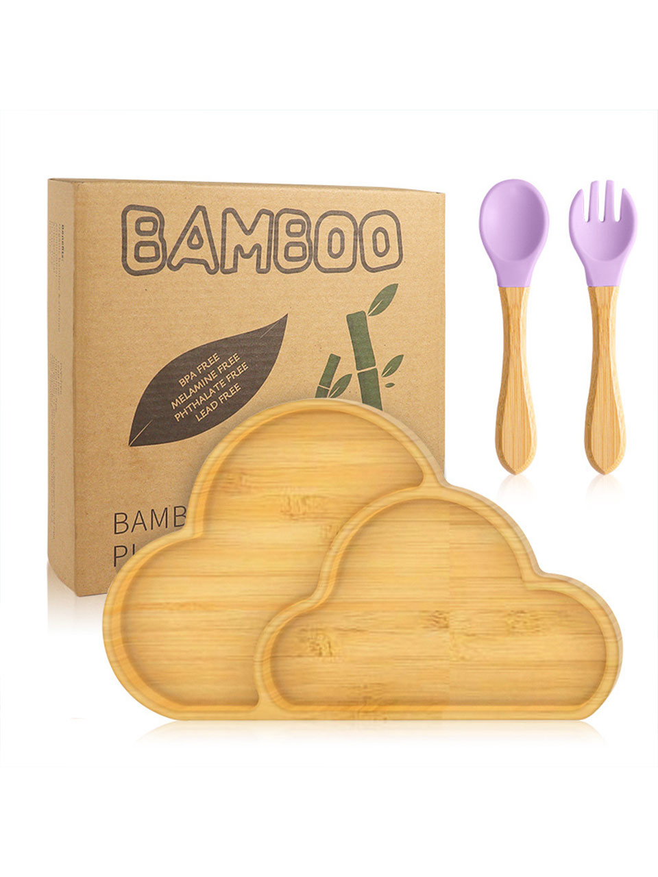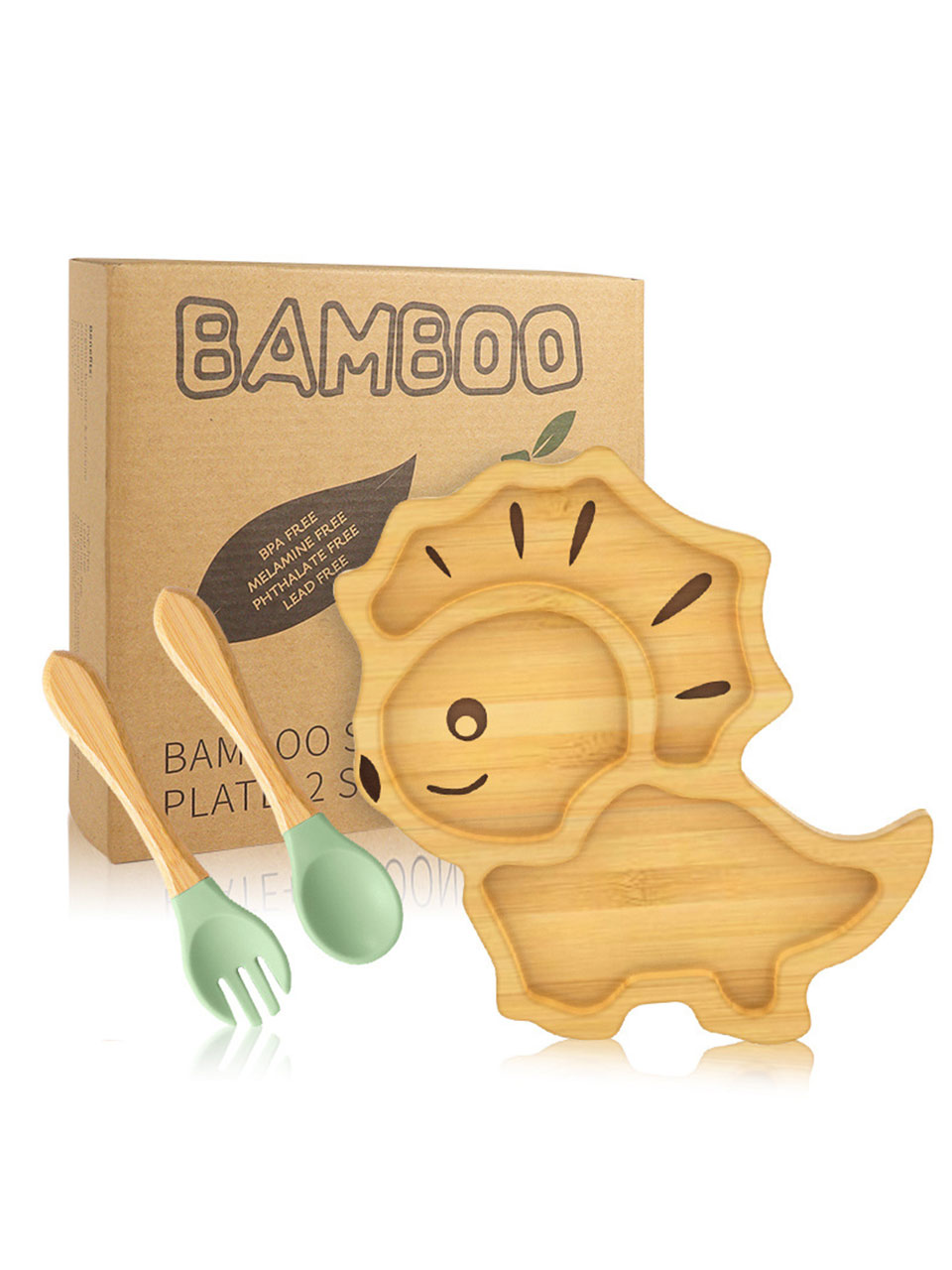• Complete Set: Includes 1 x Dinosaur Plate, 1 x Fork, and 1 x Spoon (Soft-Silicone & Bamboo handles).