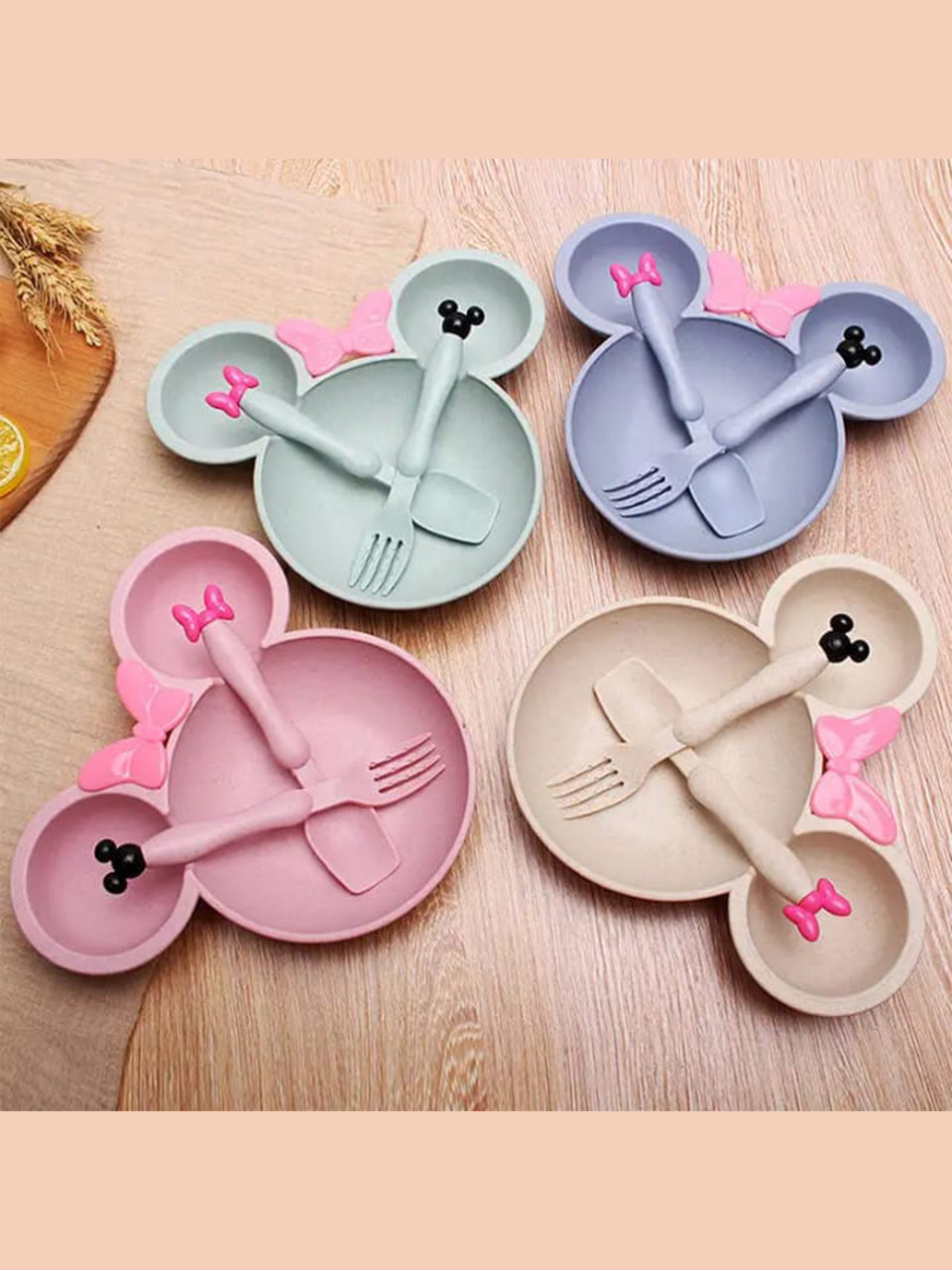 Mickey & Minnie Kids Tableware Set, Choice of Blue, Purple, Pink, or Beige.