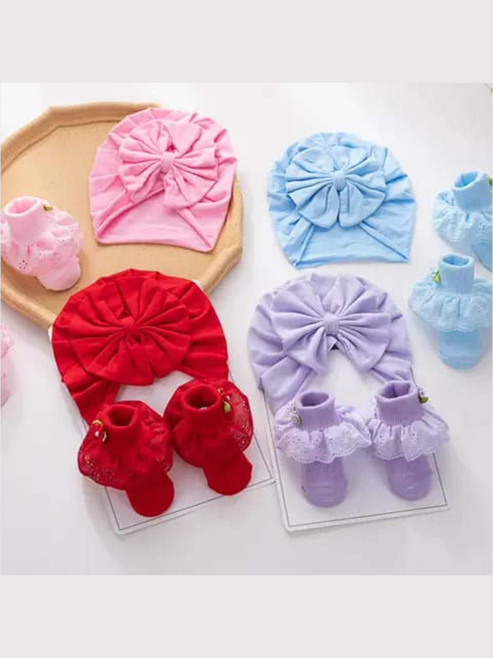 - Set Includes: 1x Turban Hat, 2x Ruffle Socks (matching pair).